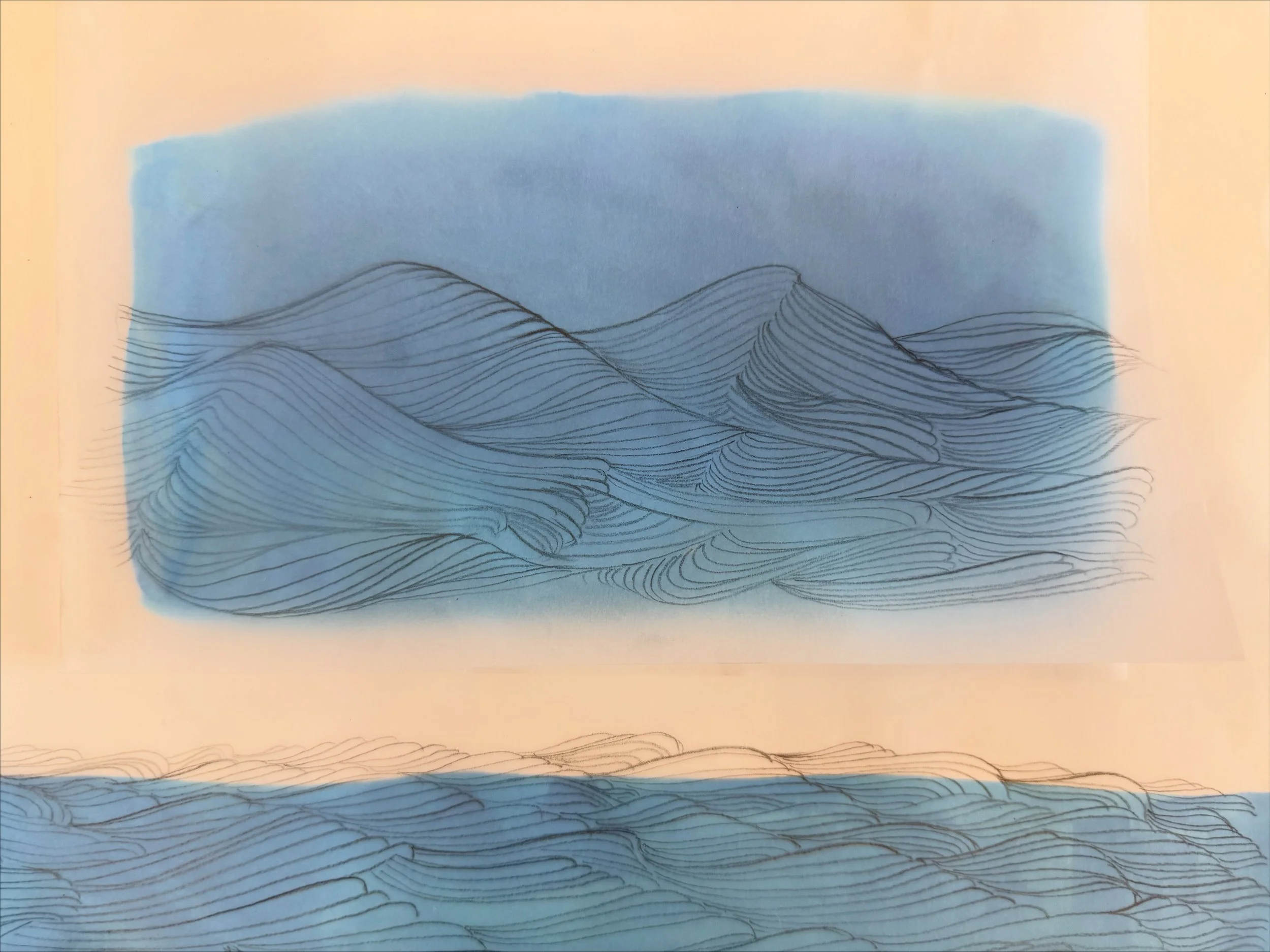 When I attempt to represent water on the page, I am aware that the effort is inherently incomplete. The surface shifts. The light changes. The horizon dissolves. The practice is, in many ways, futile—and it is within that futility that the work finds its meaning. I am drawn to the tension between interpretation and abstraction, between what I see and what I remember.